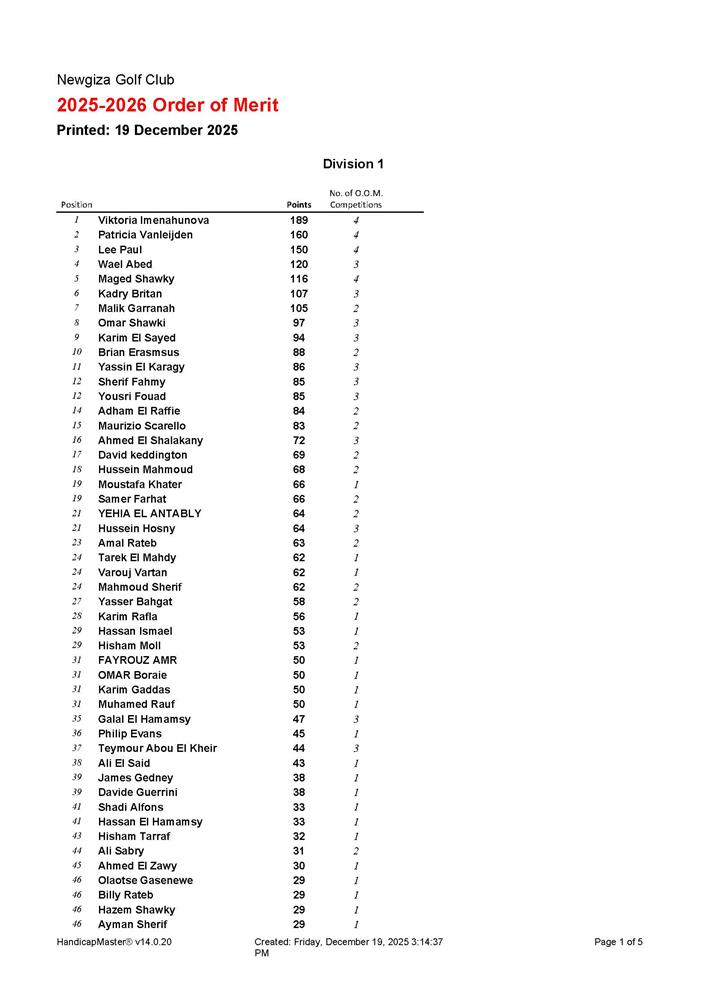 NEWGIZA Monthly Medal OOM